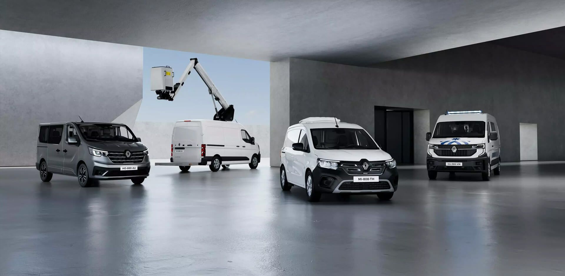 Transportieren Sie Ihr Equipment mit Werksaufbauten und Plattformen von Renault und befördern Sie Ihre Mitarbeiter in Doppelkabinen. Für Arbeiten in der Höhe können Sie zwischen Hubsteigern und Kran-Umrüstungen wählen.
